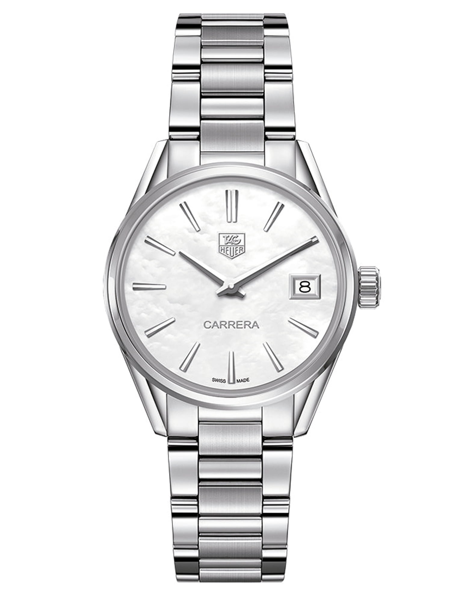 Reloj Tag Heuer Carrera Lady, caja acero pulido. esfera blanca nacarada 36mm, brazalete acero pulido y satinado.