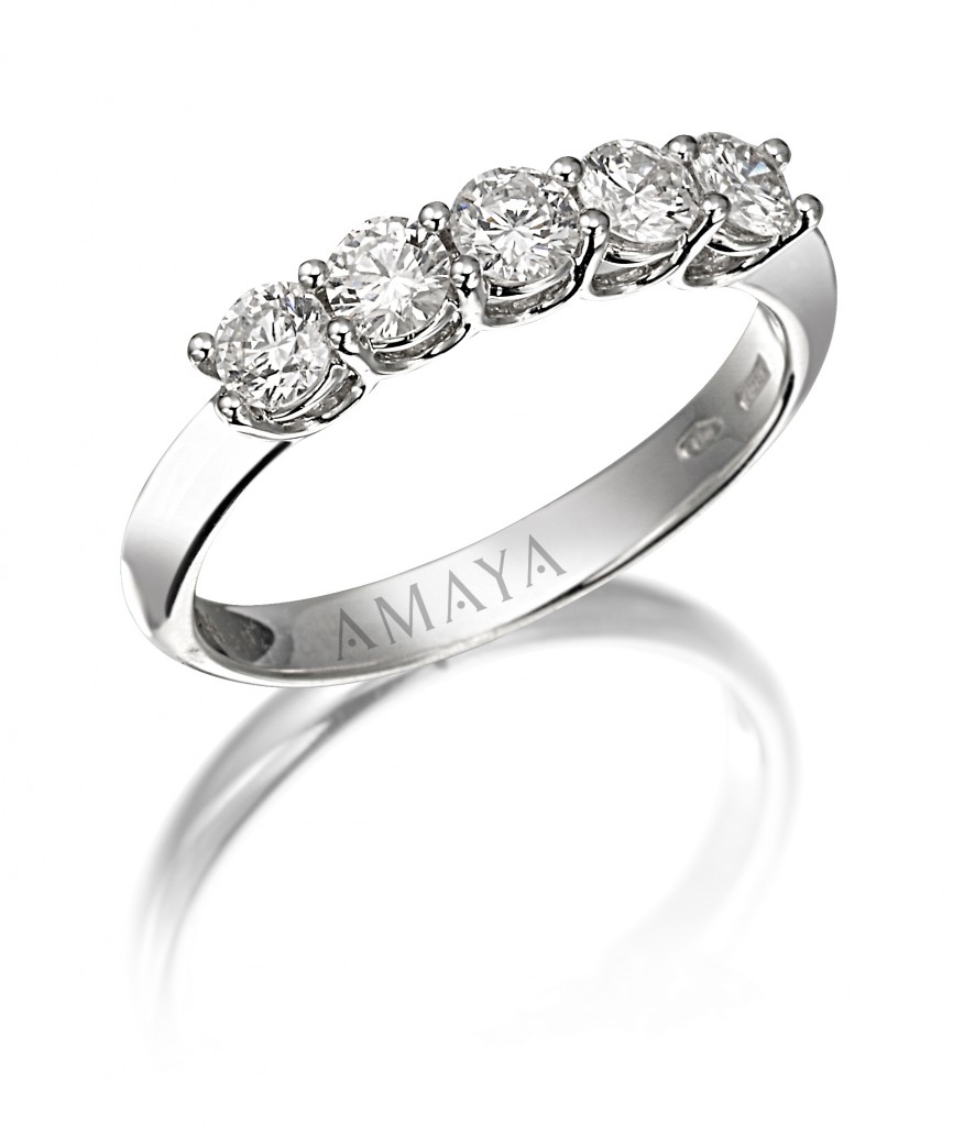 Sortija media alianza en oro blanco con diamantes talla brillante 0,60 cts