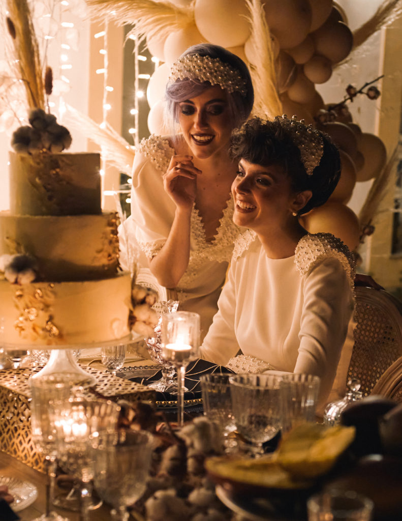Además, todos los diseños llevan incrustaciones en perlas y crital realizadas totalmente a mano y de manera artesanal, característica referente en la firma Aliaga.