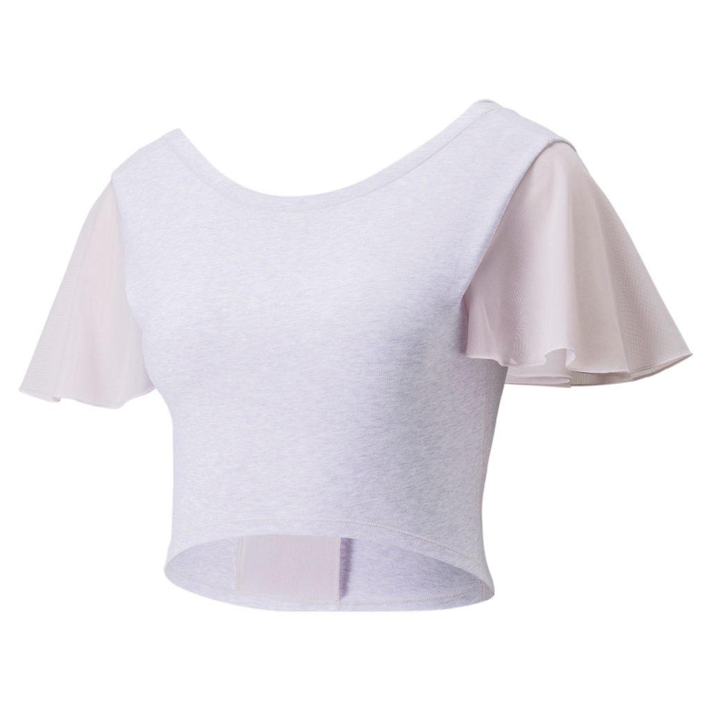 La pieza perfecta para mezclar y combinar con otras prendas de la colección, el top corto Exhale tiene un corte superior. Confeccionado con spandex de algodón jaspeado reciclado de primera calidad y con mangas japonesas de malla de poliéster reciclado en un 87 %, este top es uno de los más sostenibles hasta el momento. Los detalles ultrafemeninos, como el escote redondo inspirado en el ballet, harán que la práctica sea mucho más bonita.
