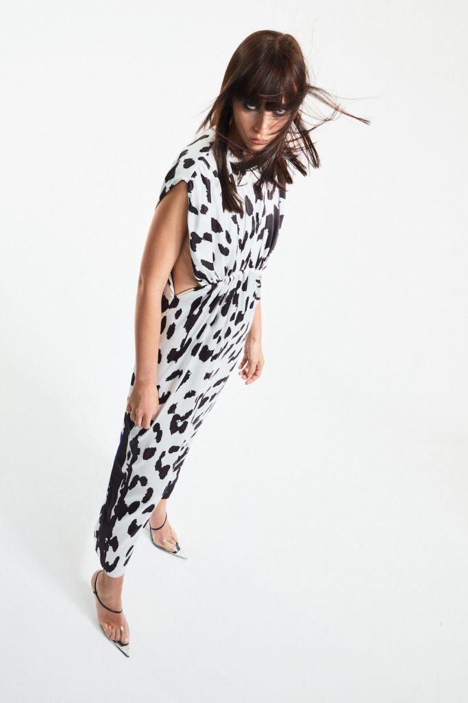 Esta colección no solo es especial por el nexo de ambas firmas, sino por el mensaje que se traslada en los diseños del ganador del Premio Nacional de la Moda, quien ha apostado por un diseño que combina la imitación del animal print con manchas de pintura que empoderan las protestas a favor de la sostenibilidad.