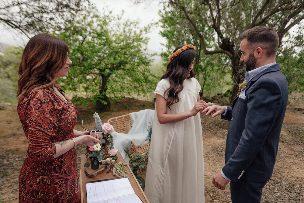 La ceremonia , con toques árabes y el rito de los dátiles, en un bonito campo de oliveras centenarias.
