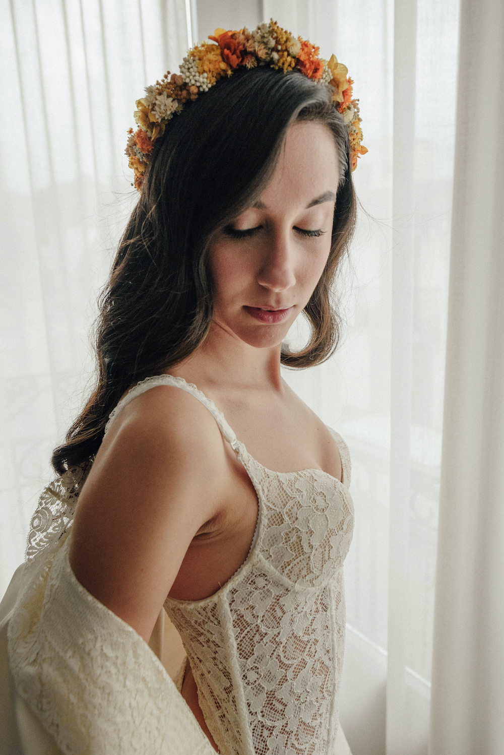 La novia luce transparencias, en sentido contrario a las tendencias actuales, donde el traje principal desvela las trabajadas piezas de ropa interior.